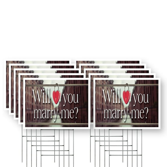 Will You Marry Me Yard Sign 10 Pack of 18 Inch x 24 Inch Double Sided Weatherproof Heavy-Duty Plastic with Stake | Romantic Messaging, Bold Display, Durable Design | Made in USA