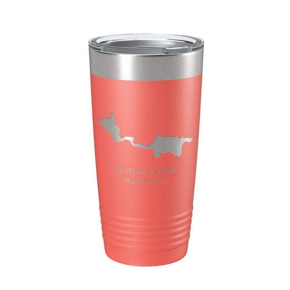 Willow Creek Reservoir Arapaho Tumbler Lake Map Travel Mug Insulated Laser Engraved Coffee Cup Colorado 20 oz Coral