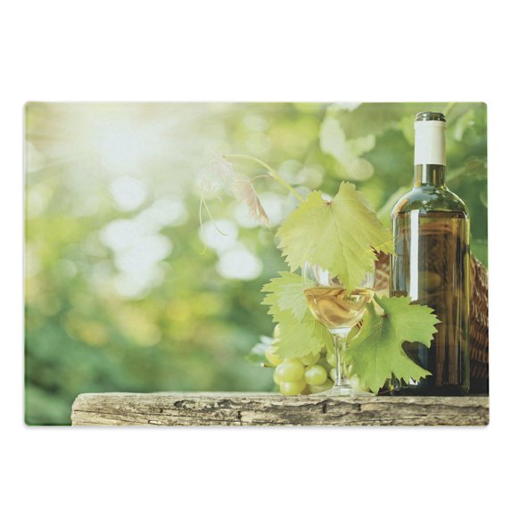 Hero image 0 of Wine Cutting Board, White Wine Bottle Glass Young Vine and Bunch of Grapes in Green Spring, Decorative Tempered Glass Cutting and Serving Board, Large Size, Pale Green Yellow Brown, by Ambesonne, 0 of 1