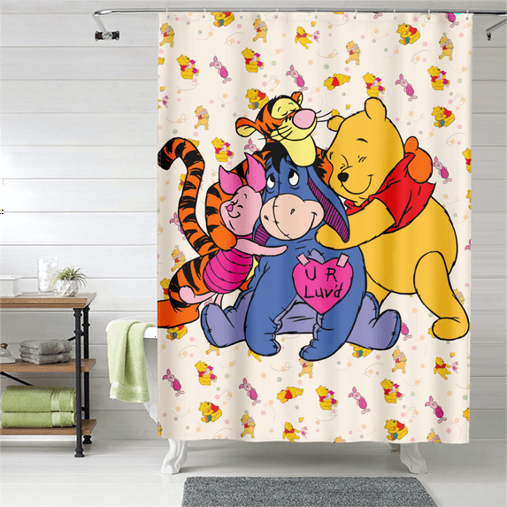 Hero image 0 of Winnie the Pooh Shower Curtain, Waterproof Fabric Curtains for Bathroom Merry Xmas with Plastic Hooks for Farmhouse, 0 of 9