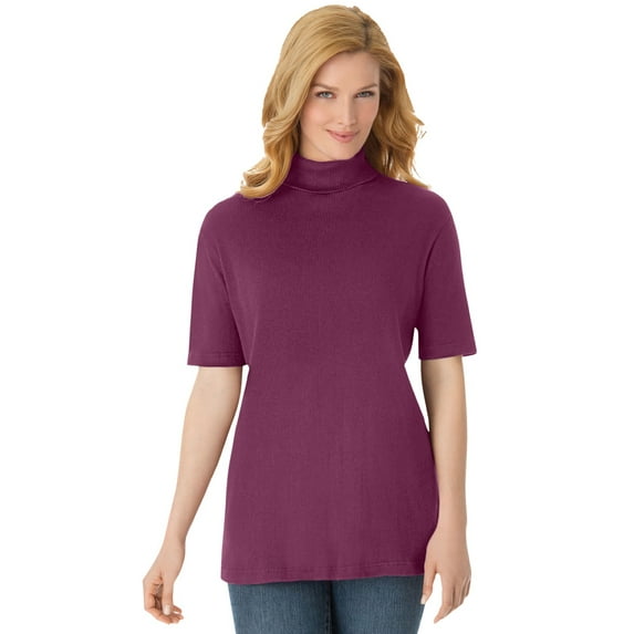 Hero image 0 of Woman Within Plus Size Ribbed Short Sleeve Turtleneck, 0 of 5