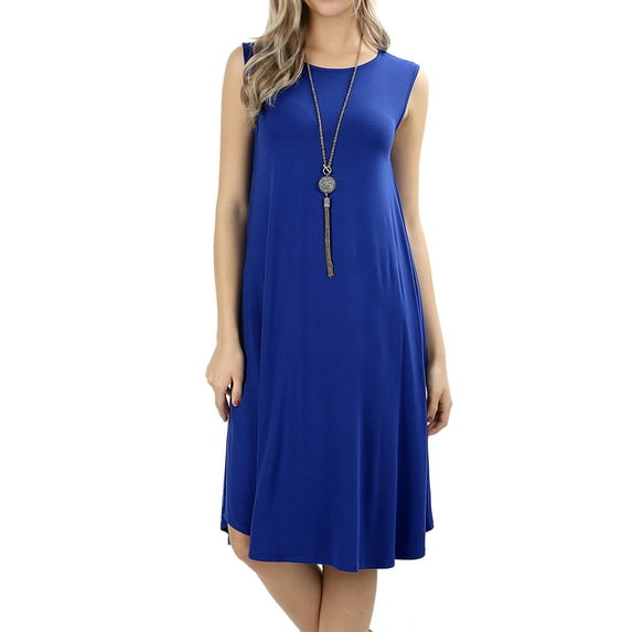 Hero image 0 of Women & Plus Sleeveless Round Neck Knee Length Tunic Swing Dress (ROYAL, 1XL), 0 of 3