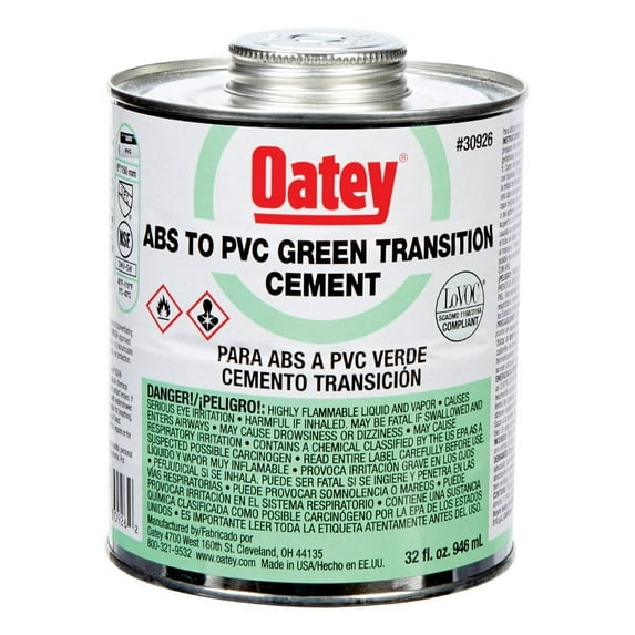 - Product Identification: Oatey Green Transition Cement is specifically formulated for joining ABS to PVC pipe and fittings.