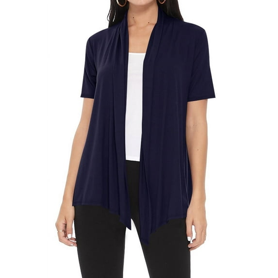 Hero image 0 of Women's Casual Short Sleeve Draped Open Front Solid Cardigan, 0 of 5