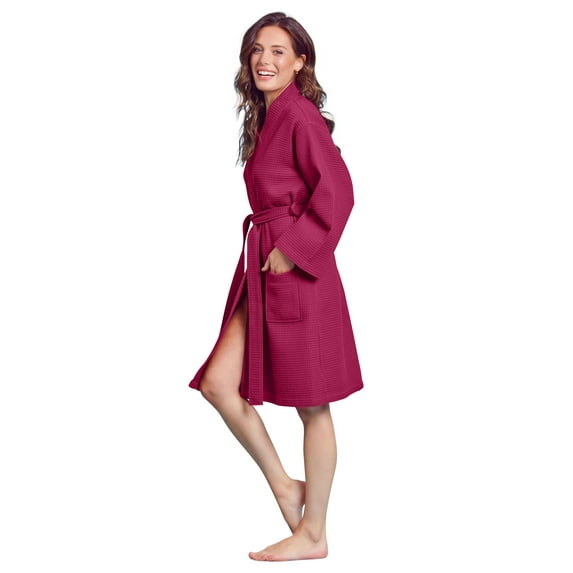 Shipping, arrives in 3+ daysElegani Soft Cotton Blend Waffle Kimono Perfect Knee Lenghth Robe for Women -Dark Red (SM) $24.99