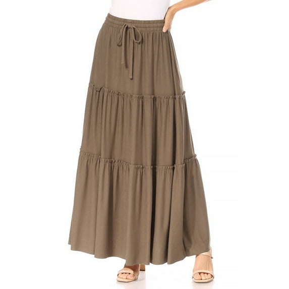 Women's Plus Size Tiered Ruffle Raw Hem Maxi Skirt