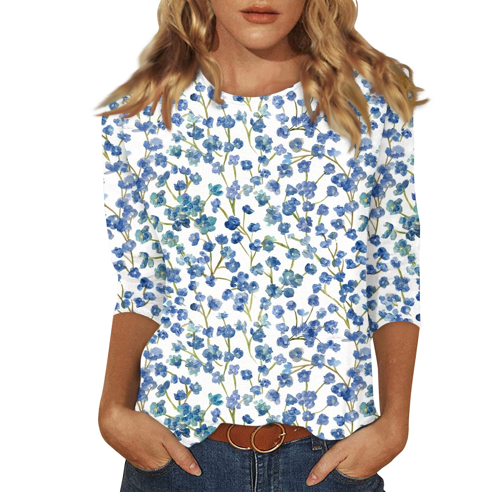 Hero image 0 of Women's Summer Tops 2025 Trendy 3/4 Sleeve T Shirts Floral Print Graphic Tees Dressy Casual Crew Neck Blouse Elbow Sleeve Comfy Loose Fit Pullover Sweatshirt, 0 of 5