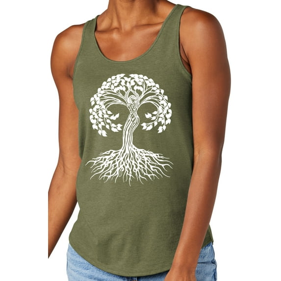 Hero image 0 of Women's White Celtic Tree Moisture-Wicking Relaxed Yoga Tank Top, Extra-Small Military Green, 0 of 5