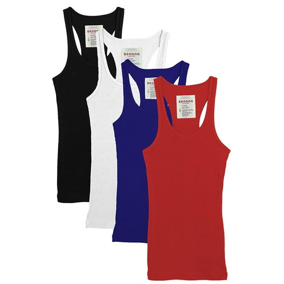 Womens & Juniors Racerback Ribbed Knit Athletic Camisole Long Tank Top - 4 or 6 Pack