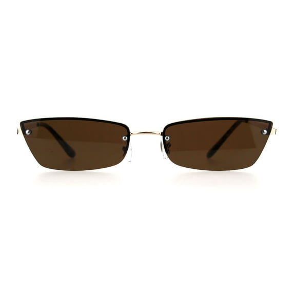 current price $9.95Womens Narrow Rectangular Rimless Cat Eye Metal Rim Retro Sunglasses Gold Brown