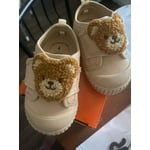 - Comfort Features: Canvas upper; cushioned insole; flexible rubber outsole; solid color; plush Teddy Bear patch