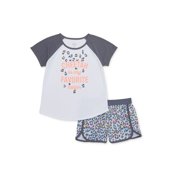 Wonder Nation Girls Cheetah Sleep Shorts Set, 2-Piece