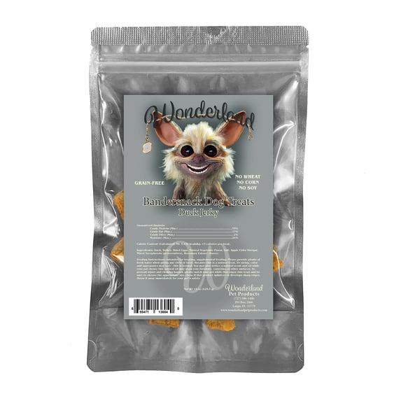 Wonderland's Bandersnack Duck Jerky for Dogs offers a healthy alternative when treating your canine friend. A limited ingredient treat that is both delicious and nutritious. Real duck is the number one ingredient in this flavorful jerky. Contains no wheat, no corn, and no soy for those special diets. There are no artificial flavors, colors, preservatives, or fillers. Made in the USA and stored in a resealable bag for convenience. Follow the rabbit down the hole, bringing wonder and enjoyment to your friend's life.