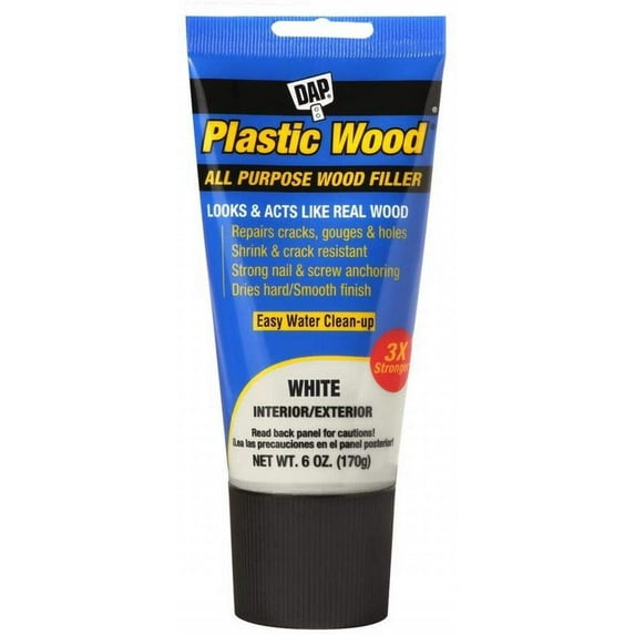 - Dap Plastic Wood is a high quality, latex-based wood filler formulated to match various wood finishes from a natural pine to dark walnut and several shades in between, including white