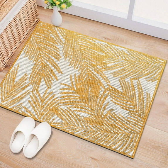 Hero image 0 of World Rug Gallery Contemporary Distressed Leaves Textured Flat Weave Indoor/Outdoor Area Rug - YELLOW 2'x3', 0 of 7