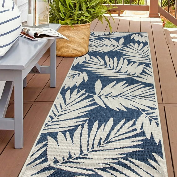 Hero image 0 of World Rug Gallery Contemporary Floral Leaves Nature Inspired Reversible Indoor/Outdoor Area Rug - Blue 2'x7', 0 of 7