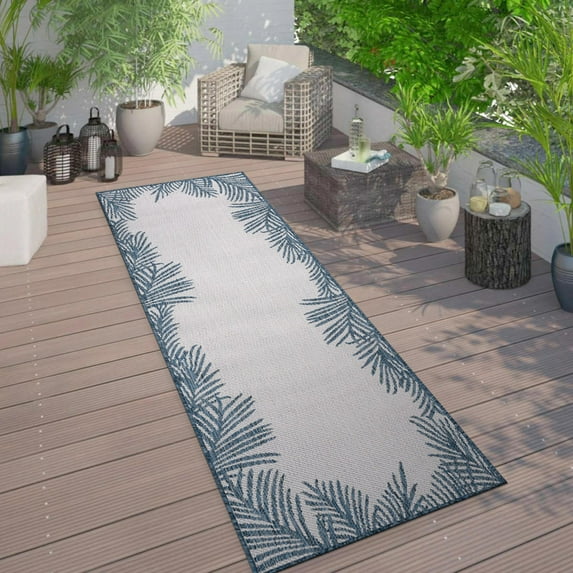 World Rug Gallery Tropical Floral Palm Leaves Textured Flat Weave Indoor/Outdoor Area Rug - NAVY 2'x7'
