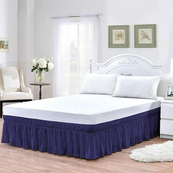 Hero image 0 of Wrap Around Ruffle Bed Skirt - Easy Fit 12-Inch Tailored Drop with Elastic - 100% Microfiber- Hotel Quality Ruffle Bed Skirt - Fade Resistant & Cool-King Size- Navy Blue Solid, 0 of 5