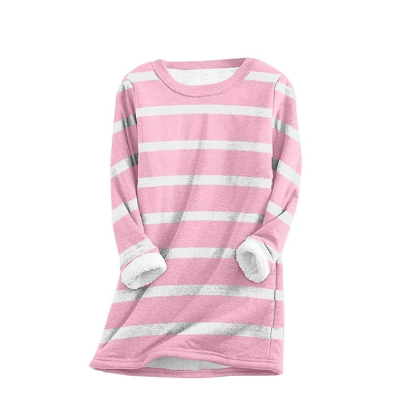 Wycnly Womens Fleece Sweatshirt Womens Thickened Plush Sweatshirts Winter Soft Fuzzy Fleece Sherpa Sweater Long Sleeve Fashion Striped Print Ladies Pullover Tops