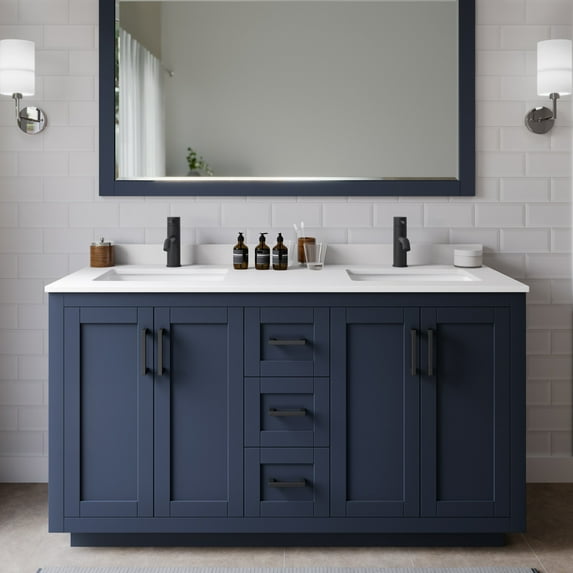 Cabinet Color:Dark Blue / White Cultured Marble Top / Matte Black Hardware