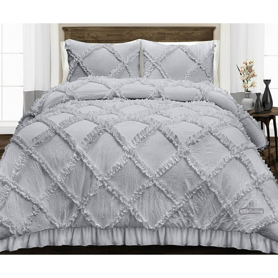 Hero image 0 of Wyoming King Comforter Diamond Ruffle Light Grey 300 GSM Plush Siliconized Microfiber Fill Duvet Insert With 1000 Thread Count Egyptian Cotton Shell Fluffy with Piping & Pillowcases, 0 of 8