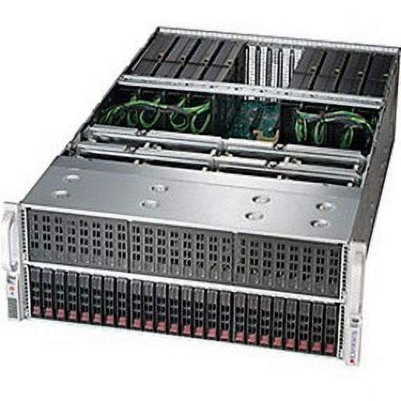 Supermicro SuperServer 4028GR-TR Barebone System - 4U Rack-mountable - Intel C612 Chipset - Socket LGA 2011-v3 - 2 x Processor Support - Black - 1.50 TB DDR4 SDRAM DDR4-2133/PC4-17000 Maximum RAM Support - Serial ATA/600 RAID Supported Controller - ASPEED AST2400 Integrated - 24 x Total Bays - 24 2.5" Bay(s) - 11 x Total Expansion Slots - Processor Support (Xeon) - Gigabit Ethernet - 4 USB 3.0 Port(s) - 4 x 1600 W