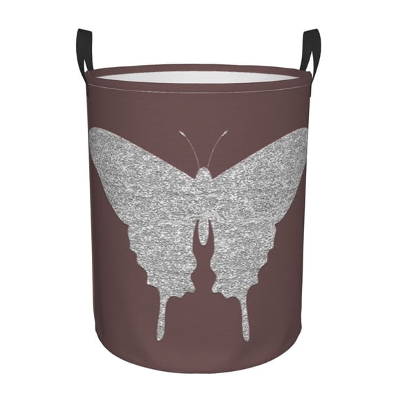 Hero image 0 of XMXY Round Laundry Basket Organizer, Silver Butterfly Pattern Waterproof Collapsible Dirty Clothes Basket Laundry Hamper, Small Size, 0 of 8