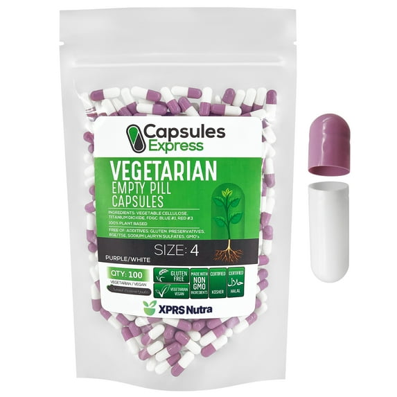 XPRS Nutra Size 4 Lavender and White Empty Vegan Capsules - Vegetarian/Vegetable Pill Capsule - DIY Powder Filling- Veggie Pill Capsules Empty Caps Pills (100)XPRS Nutra Size 4 Lavender White Empty Vegan Capsules Vegetarian Vegetable Pill Capsule DIY Powder Filling Veggie Pill Capsules Empty Caps Pills 100