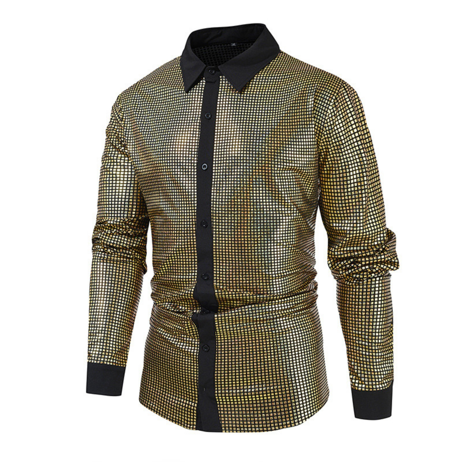 Hero image 0 of YLSDY 70s Disco Shirt for Men Metallic Sequins Party Costumes Long Sleeve Button Down Shirts Vintage Outfits Nightclub Tops Yellow XXL, 0 of 8