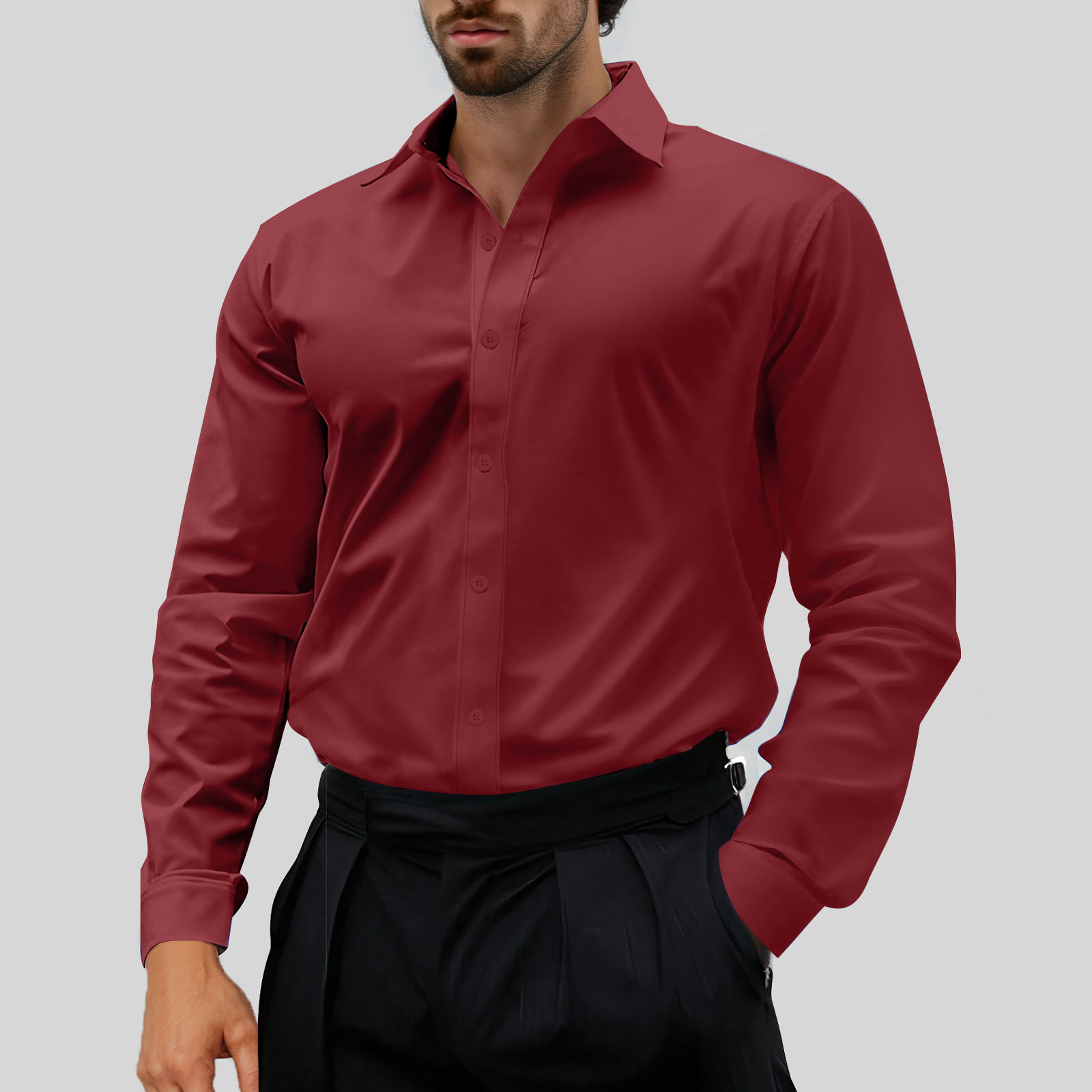 - YLSDY Button Down Shirt Men Regular Fit Business Casual Dress Shirts Solid Long Sleeve Stretch Wrinkle-Free Formal Shirts Wine XXL
