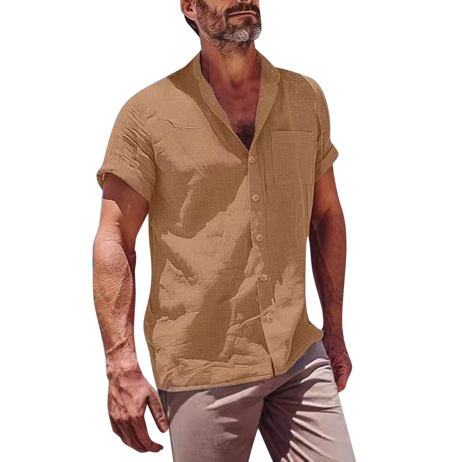 YLSDY Fashion Cotton Linen Casual Button Down Tops for Men, Summer Classic Short Sleeve Pocket Tees Hawaiian Beach Vacation Shirts Yellow S