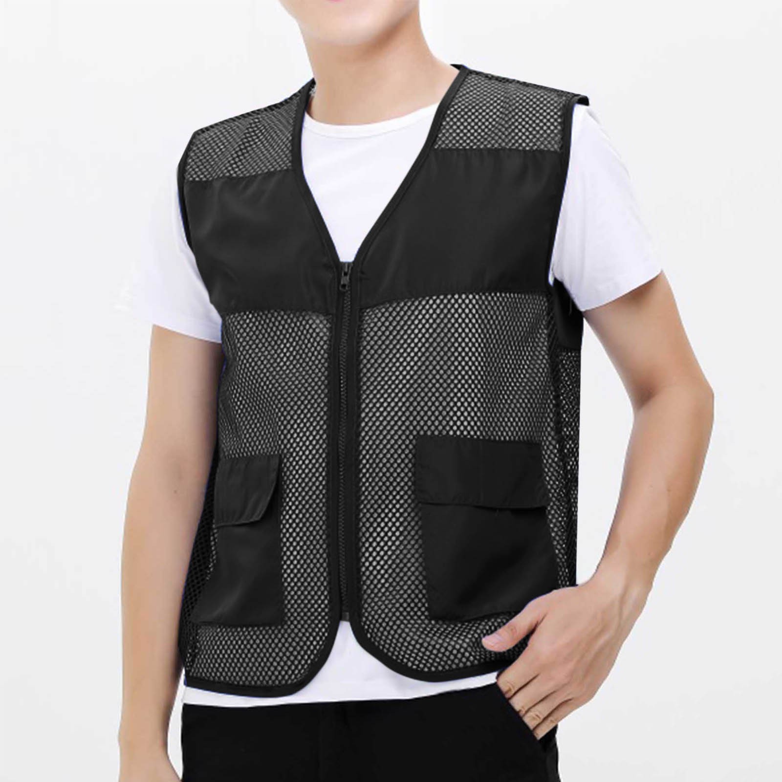 YLSDY Deals Mens Breathable Mesh Vest Jacket Summer Casual Lightweight Cycling Travel Zip Up Vests Outdoor Fishing Work Waistcoat Black XXXL