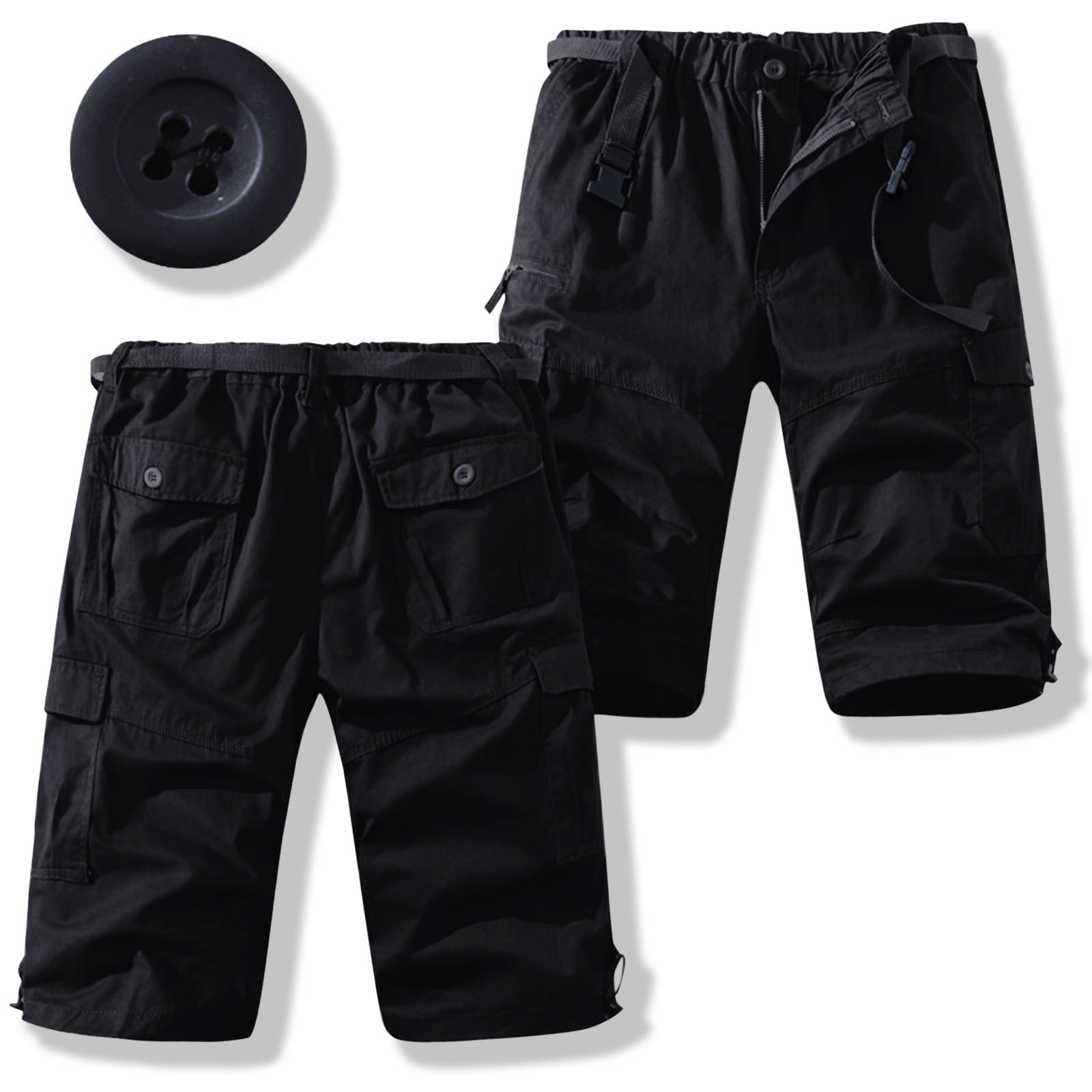 YLSDY Fashion Mens Elastic Waist Button Cargo Shorts Summer Outdoor Hiking Short Pants Comfort Sports Work-Shorts with Pockets Black XXL