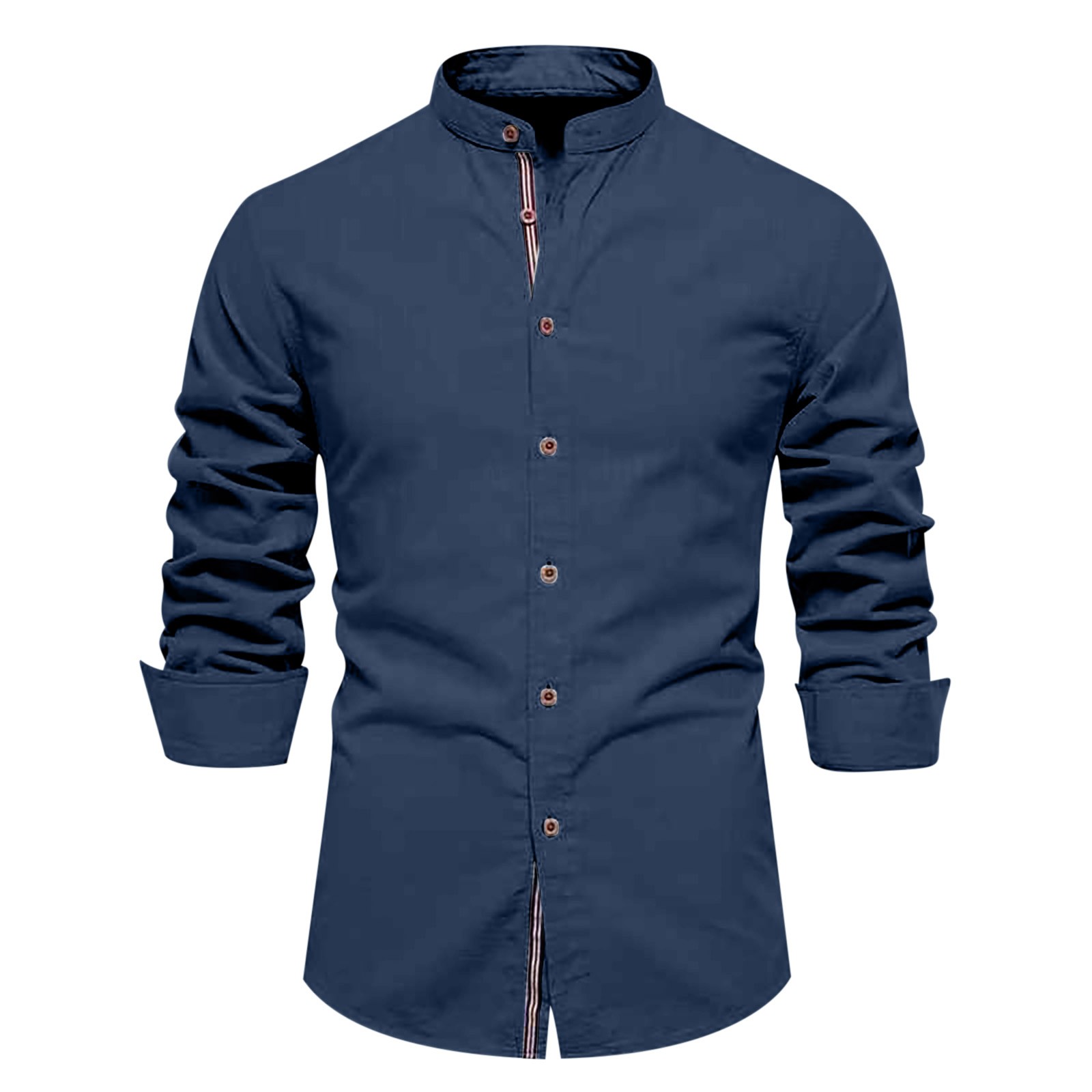 Hero image 0 of YLSDY Fashion Mens Long Sleeve Cotton Linen T-Shirt Button Down Band Collar Beach Tops Casual Button Up Summer Oxford Dress Shirt Dark Blue S, 0 of 2
