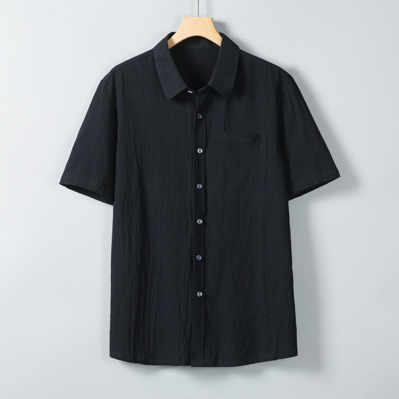 YLSDY Men Pleated Loose Button Down Shirts, Summer Short Sleeve Lapel Casual Tees Fashion Beach Vacation Tops with Pockets Black L