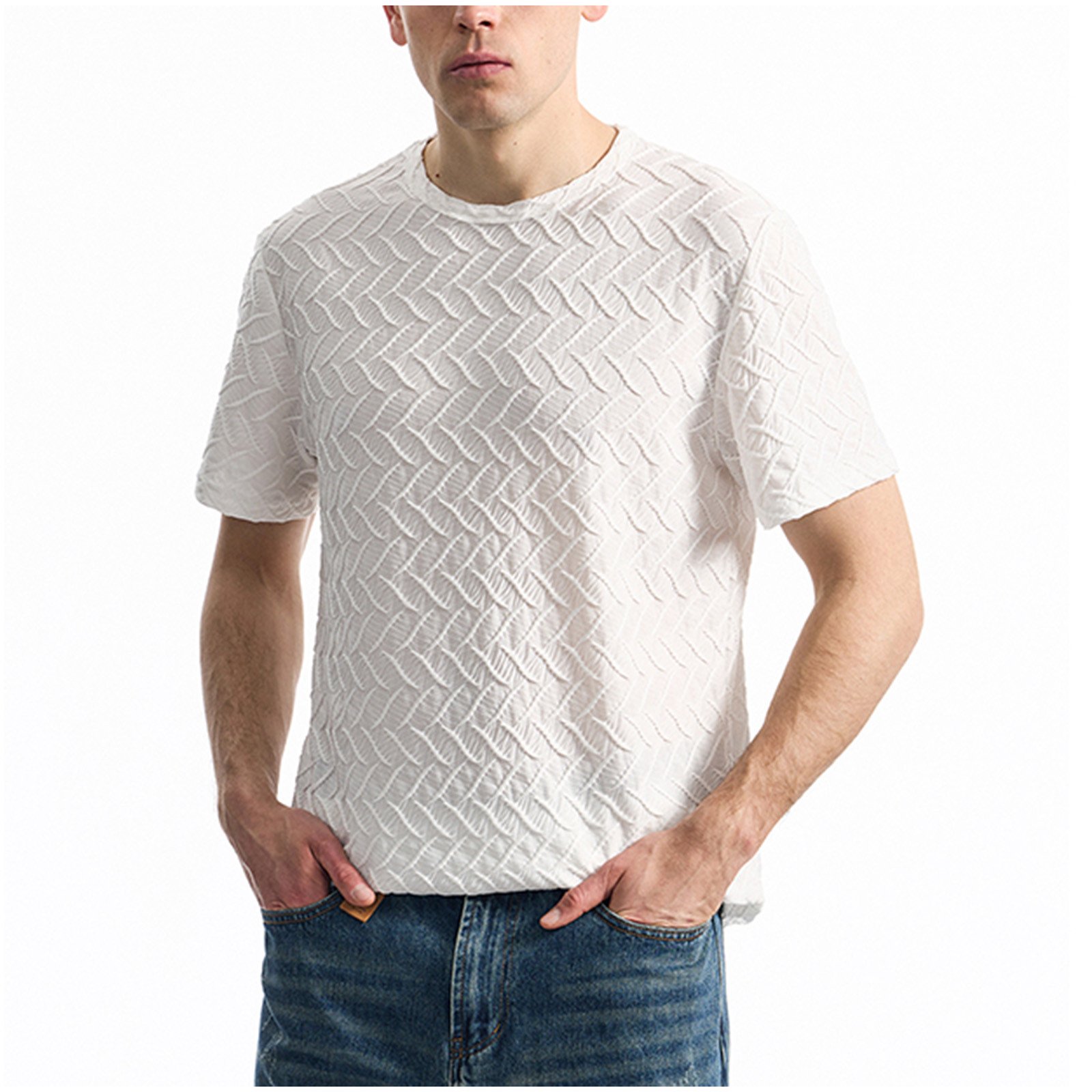 - YLSDY Men's Solid Color Jacquard Trendy Tees, Stretch Slim Fit Athletic Muscle Shirts Summer Short Sleeve Breathable Tops White L
