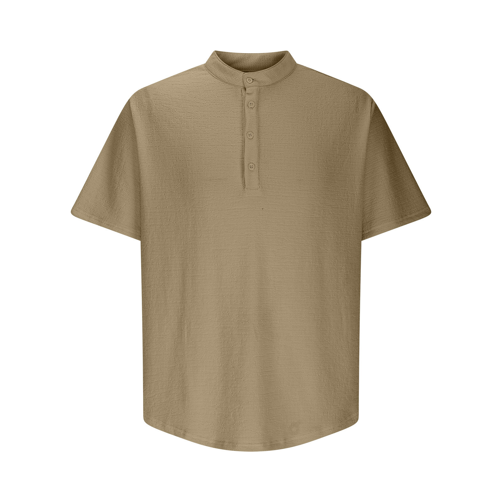 Hero image 0 of YLSDY Men's Summer Lightweight Cotton Linen Shirts Casual Short Sleeve Breathable Banded Collar Henley for Beach Vacation Khaki XXXXL, 0 of 4
