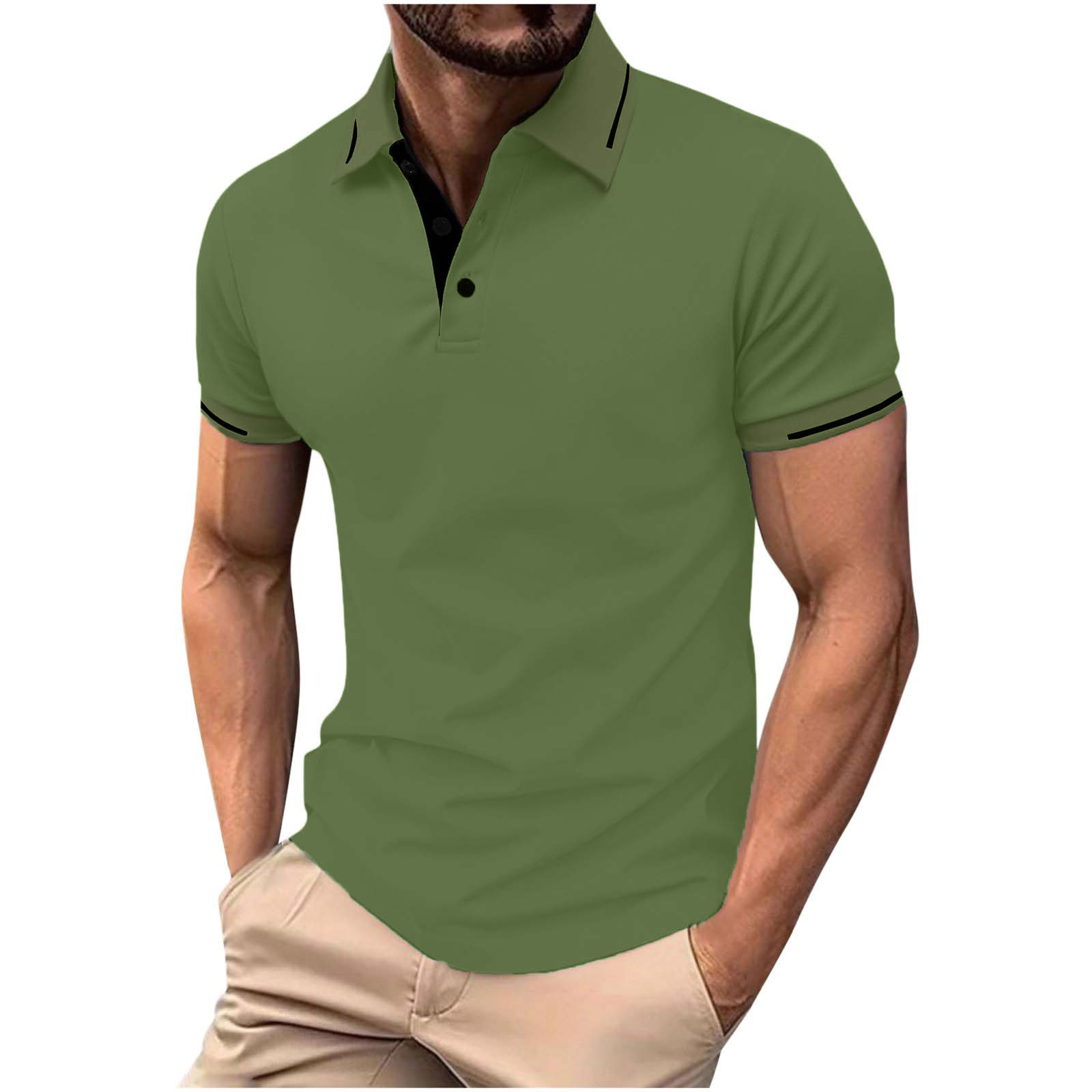 Hero image 0 of YLSDY Mens Casual Button Collared Shirts Collared Classic Button Basic Short Sleeve Cotton Pique Button Collared Shirt Stylish Golf Tops Green XXL, 0 of 5