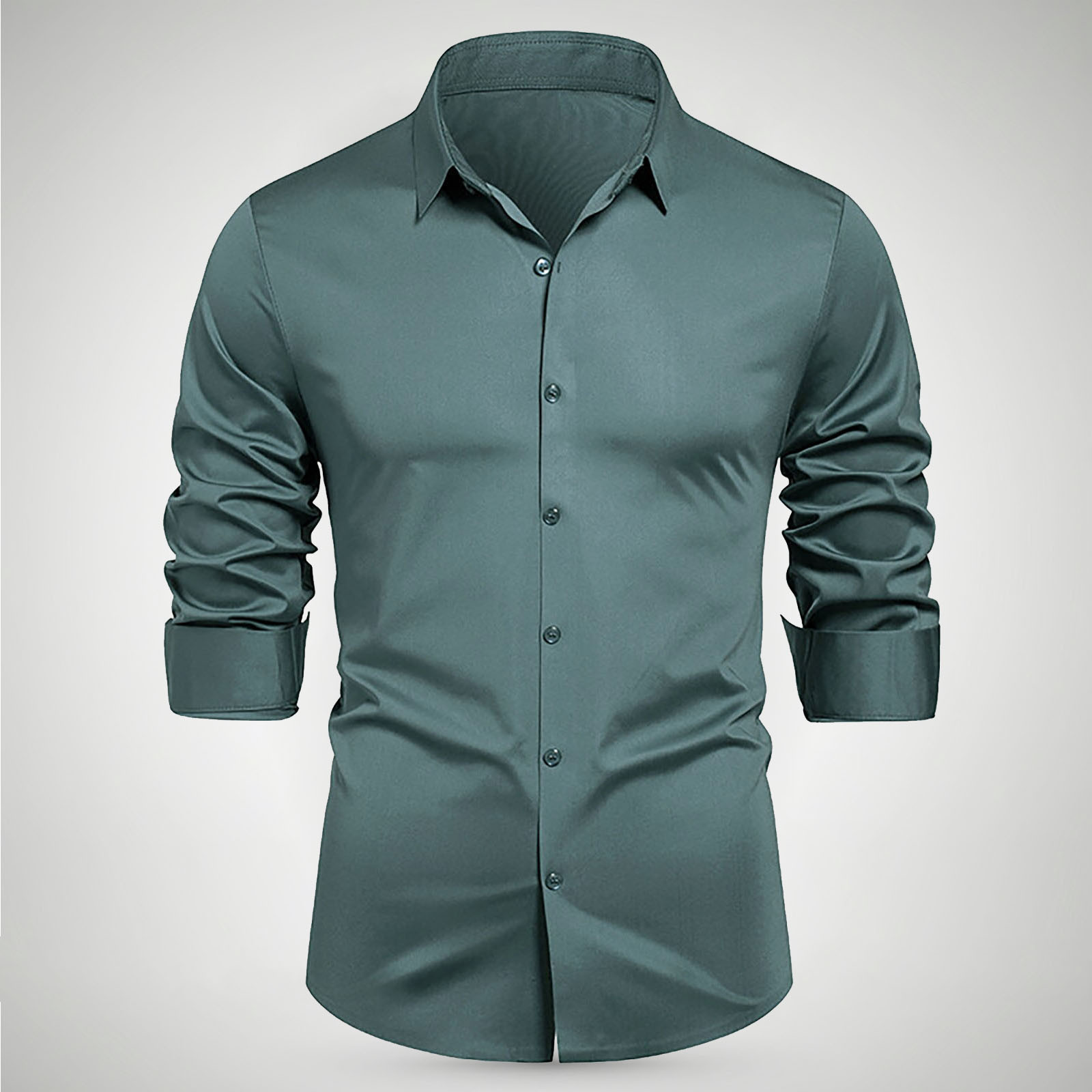 Hero image 0 of YLSDY Mens Dress Shirts Wrinkle-Free Formal Shirts Tuxedo Tshirts Lightweight Stretch Performance Business Casual Shirt Army Green XXXXL, 0 of 6
