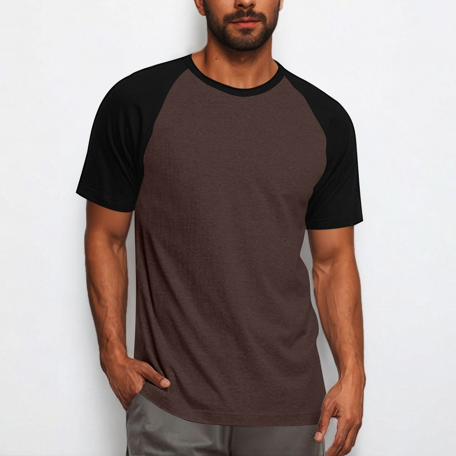 Hero image 0 of YLSDY New summer arrivals Men's Raglan Baseball Tee Shirt Short Sleeve Crew Neck Tops Color Block Summer Fashion Shirts - Casual T-Shirts Brown M, 0 of 8