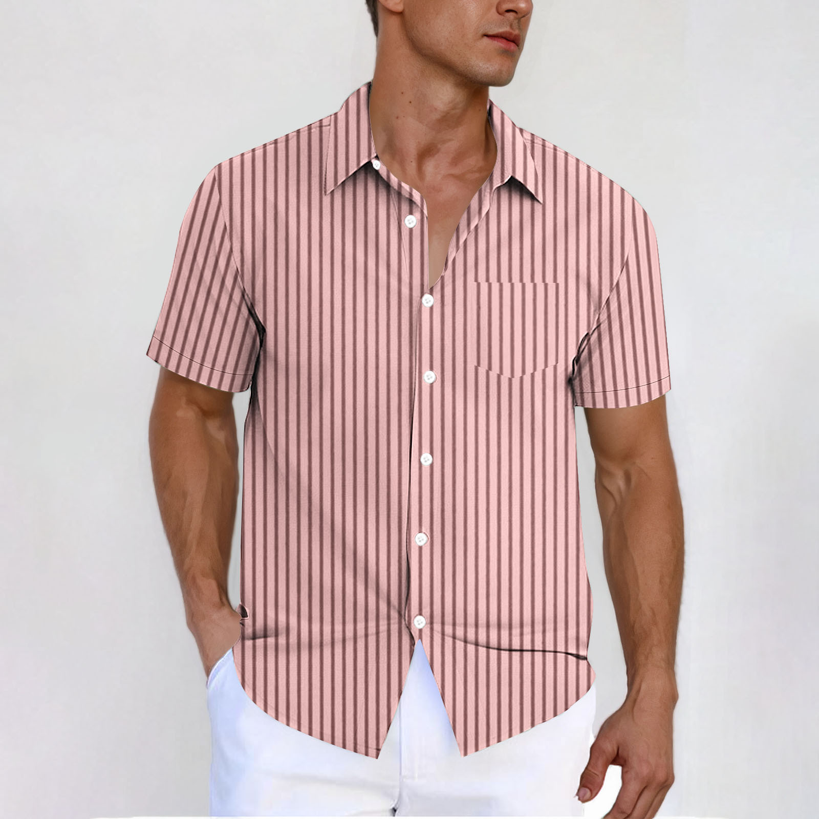 Hero image 0 of YLSDY Fashion Men's Striped Button Down Shirt - Casual Short Sleeve Regular Fit Business Dress Shirts Summer Fashion Tee Tops with Pocket Pink L, 0 of 5