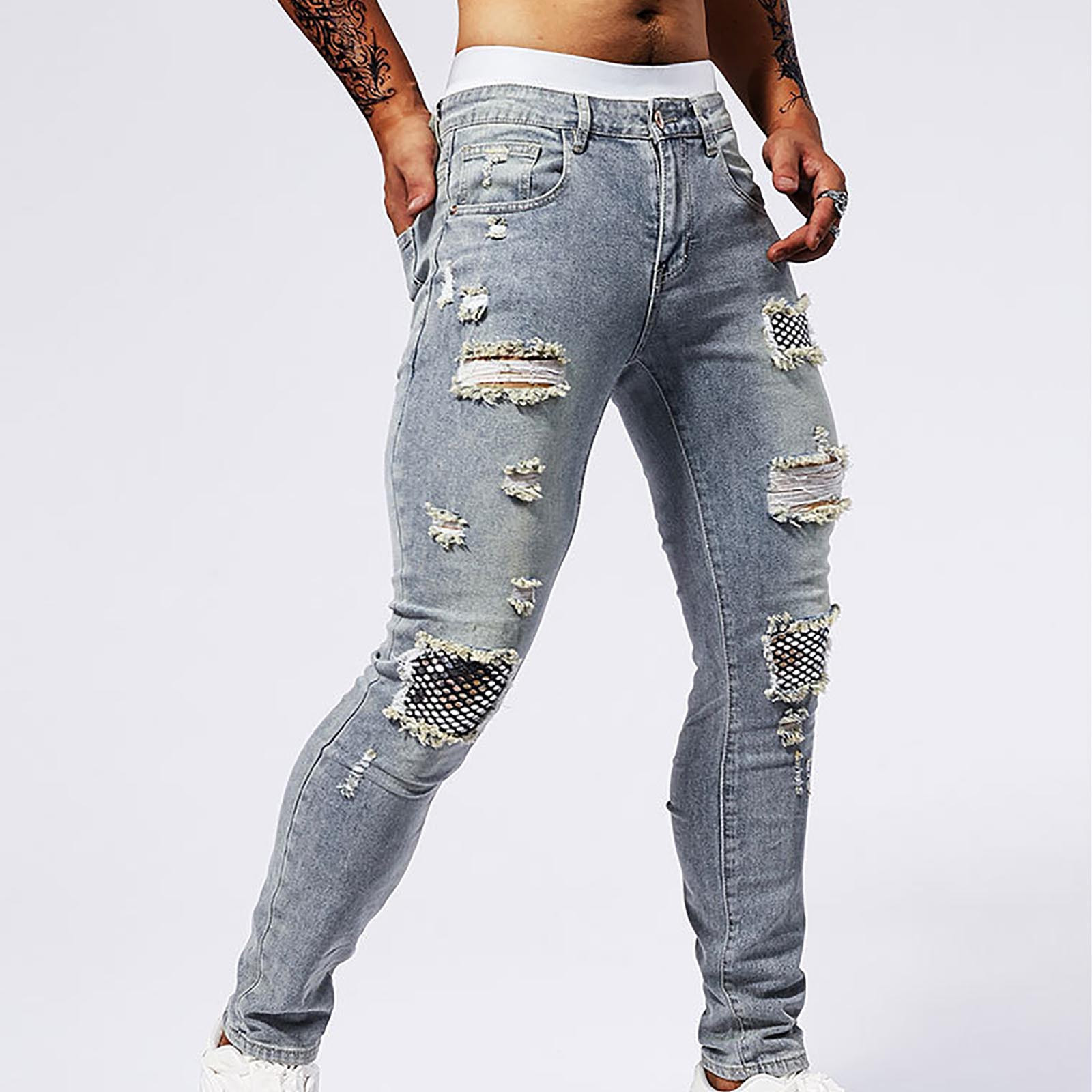 Hero image 0 of YLSDY Fashion Men's Jean Ripped Slim Fit Straight Leg Denim Pants Stretch Skinny Distressed Comfort Fashion Biker Denim Pants Jeans Gray 36, 0 of 9