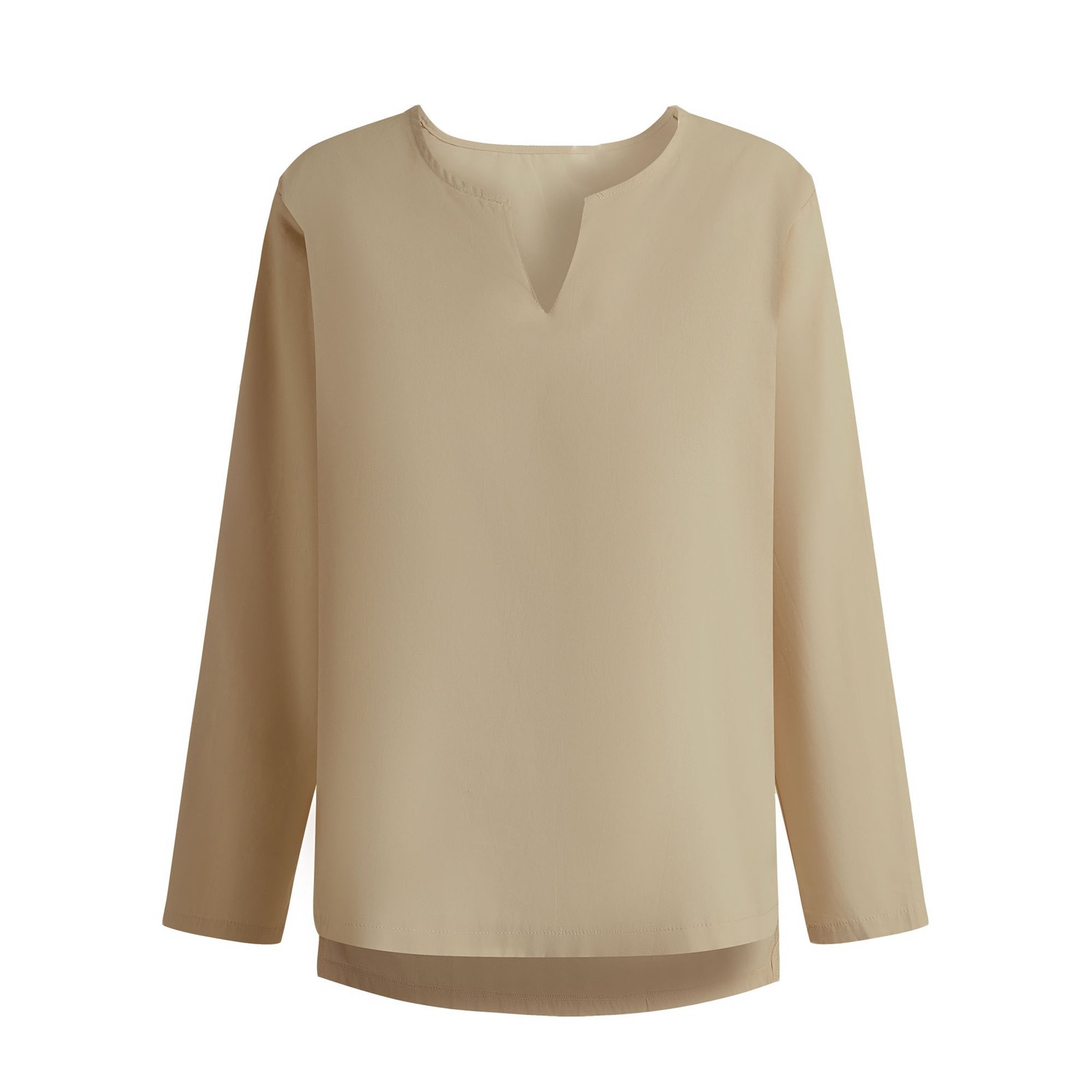 Hero image 0 of YLSDY Savings Mens Cotton Linen Hipster Crewneck Long Sleeve T-Shirt V Neck Fashion Shirt High Low Hem Solid Color Tunic Tops Pullover Khaki L, 0 of 2