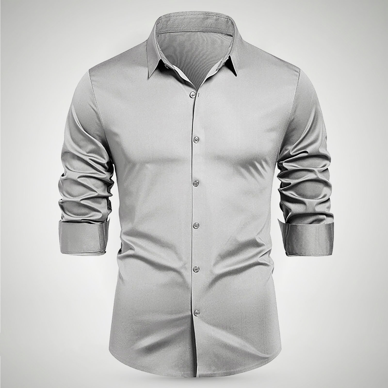 Hero image 0 of YLSDY Fashion Mens Dress Shirts Wrinkle-Free Formal Shirts Tuxedo Tshirts Lightweight Stretch Performance Business Casual Shirt Gray XL, 0 of 6