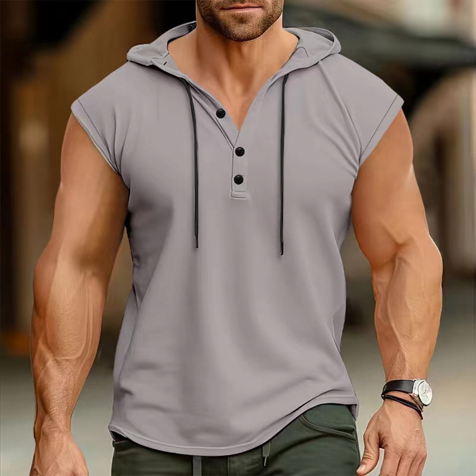 YLSDY Fashion Mens Shorts Sleeve Hoodies Gym Workout Running Shirts Button Up Muscle Bodybuilding T Shirts Drawstring Athletic Fitness Tees Gray L