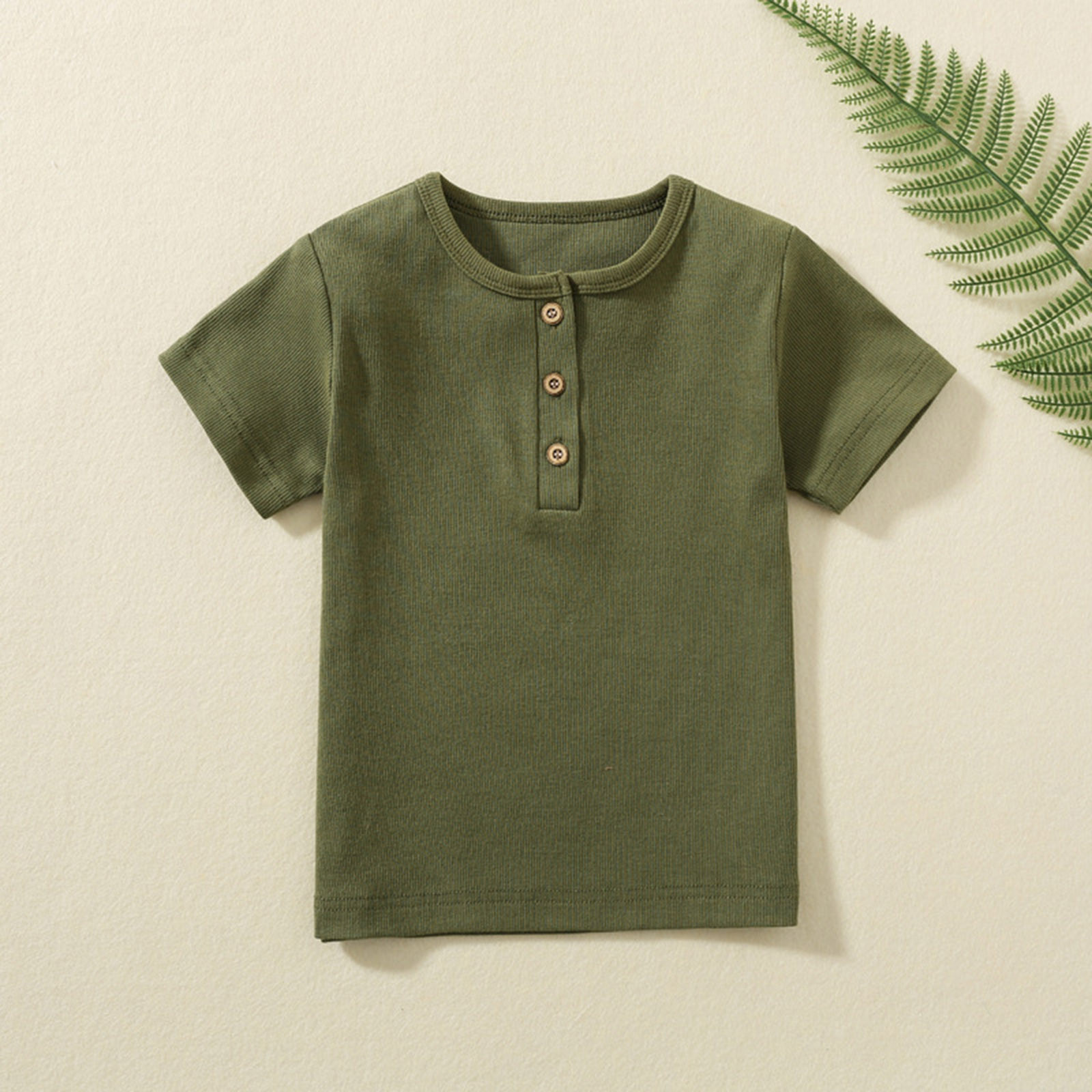Hero image 0 of YLSDY Toddler Short Sleeve Henley Shirt Boys Ribbed T-Shirt Toddler Kids Boys Girls Fashion Comfortable Solid Button Tops Army Green 4 Years, 0 of 4