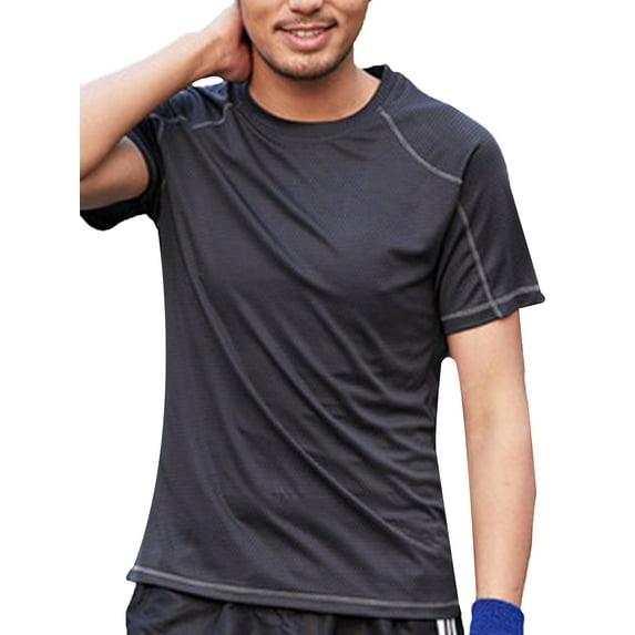 Hero image 0 of YONGHS Men's Short Sleeve Workout Shirts Rash Guard Tops Athletic T-Shirt Dark Grey 2XL, 0 of 6
