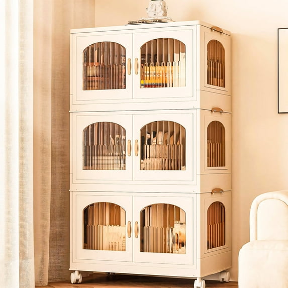 $3099current price $30.99Collapsible Storage Bins and Lid, Household Storage Cabinets With Wheels, Visible Doors, 3 Tiers Foldable Storage Boxes, Plastic Stackable Storage with Doors