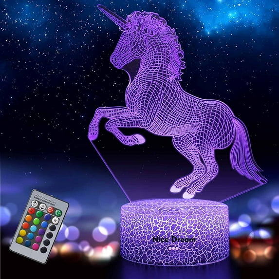 YSITIAN Nice Dream Unicorn Night Light for Kids, 3D Illusion Night Lamp, 16 Colors Changing with Remote Control, Room Decor, Gifts for Children Boys Girls YT-7323