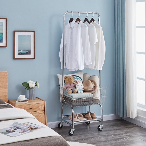9. Multifunctional: This laundry storage cart on wheels can be used as a clothing rack or a shelving unit, bringing you various options for creating garment and accessory storage.